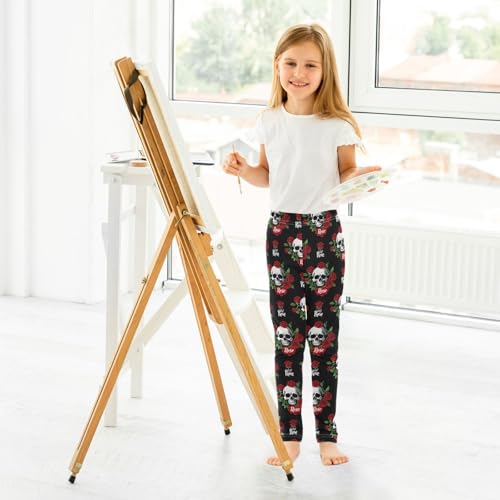 Red Rose Skull Head Girls Leggings Soft Stretch Workout Yoga Dance Pants for Kids Casual Tights 6