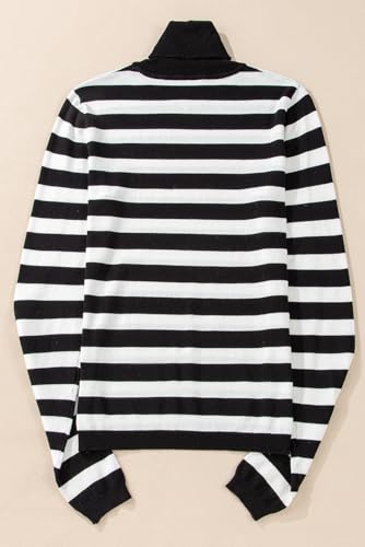 Women's Black Stripe Slim Fit High Neck Knit Sweater - Elegant and Warm 1
