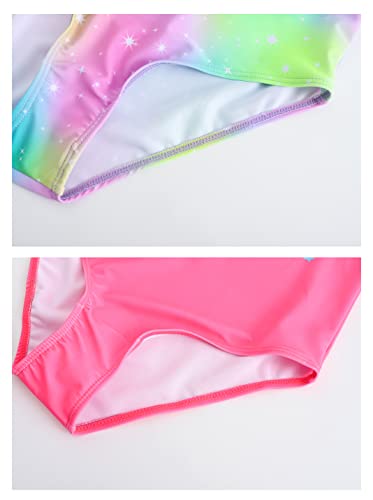 • The Package include 2 packs of one piece bathing suits swimwear, both of them are in different colors and prints. All of the printed unicorn and mermaid patterns are charming and cute, your girl will love them and enjoy them.