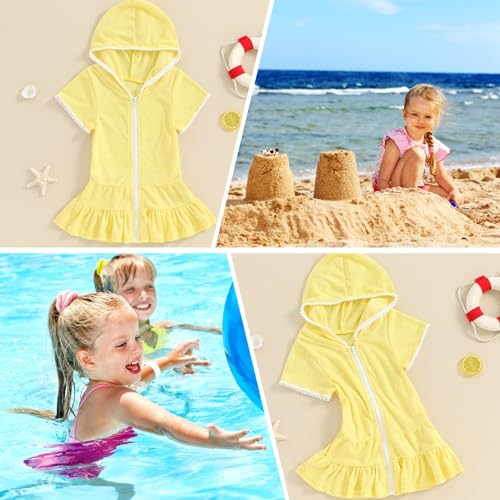Girls Cover Up Hooded Girls Swim Cover Up Short Sleeve Girl Swimsuit Cover Up Cute Zipper Closure Toddler Swimsuit 6