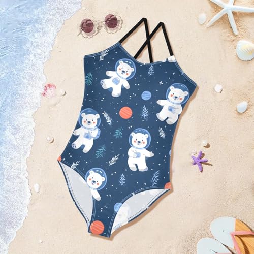 Girls Swimsuit Astronaut White Bear Grass Pattern One Piece Swimwear 4