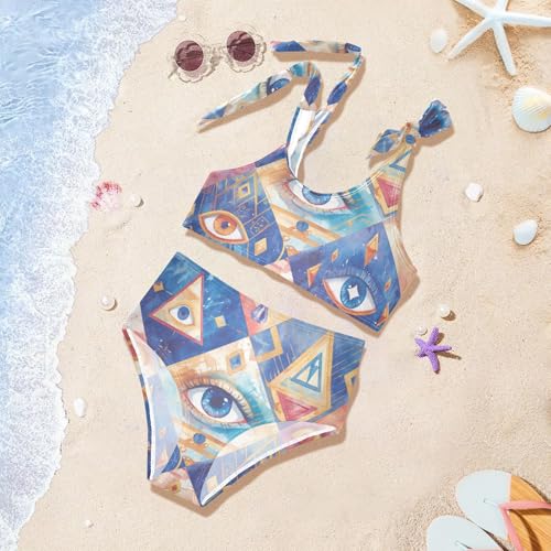 More information about KLL Abstract Evil Eye White Girl Two Piece Bikini Set Quick-Dry Swimsuit Swimming Suits Cute Shoulder Strap