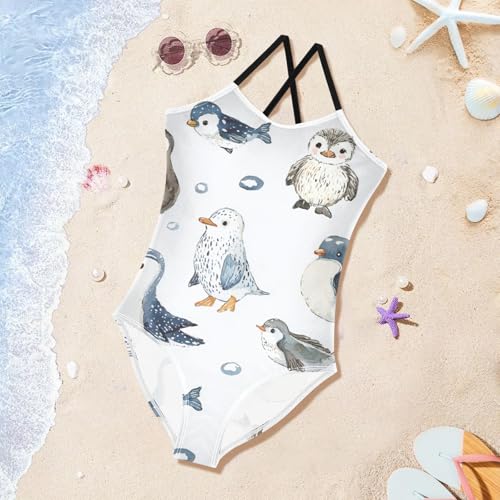 ZZKKO Cute Sea Penguin Girls Swimsuit One Piece Bathing Suit for Baby Girls' Swimwear 3-10T 1