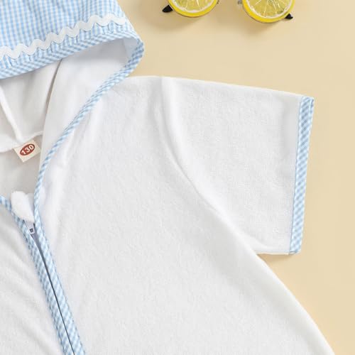 Toddler Boys Girls Terry Swimsuit Cover Up Short Sleeve Zipper Hooded Embroidery Bathing Suit Kids Summer Swimwear 6