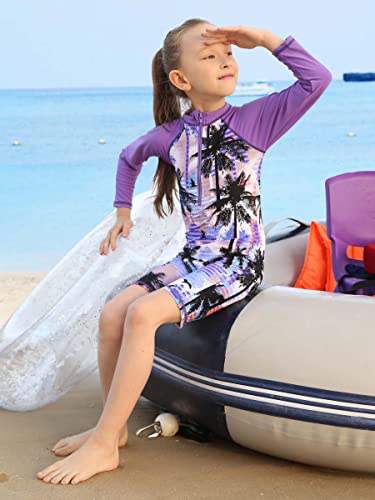 TFJH E 1PCS Long Sleeve Girls Bathing UPF 50+ Rash Guard Suits Swimsuts Zip 3-14Y 3