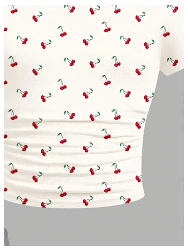SweatyRocks Girl's Cherry Print Ruched T Shirt Short Sleeve Cute Tee Crop Tops 4