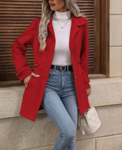 HOT ! yoeasy Womens Pea Coat Notched Lapel Collar Single Breasted Fall Winter Trendy Casual Wool Blend Trench Coat Jacket