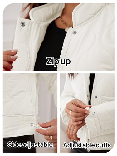 MEROKEETY Women's Cropped Zip-Up Bomber Jackets Warm Quilted Long Sleeve Stand Neck Winter Coats 2