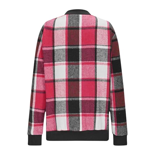 HOT ! Womens Plaid Bomber Jacket Lightweight Zip Up Shackets Cropped Jackets Casual Outerwear Checkered Coats Fall Outfits