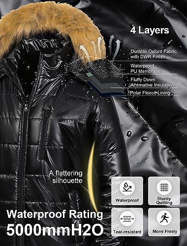 • ❄Waterproof & Dry & Warm - Outer fabric with 5000mm waterproof finish and transparent membrane is paired with an ultra-soft polar fleece thermal lining that covers the entire body to lock the heat efficiently. Fleece is composed of anti-static materials. It's a move freely warm winter coat for all plus size women.