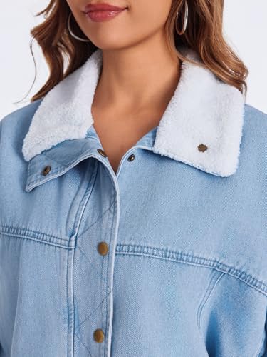 Tankaneo Womens Oversized Denim Jackets Sherpa Collar Button Down Jean Jacket Fall Warm Shacket Coats 6