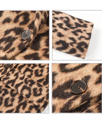 Sexyshine Women's Leopard Print Long Trench Coat Notched Lapel Double Breasted Pea Coat Wool Overcoat Jacket 4