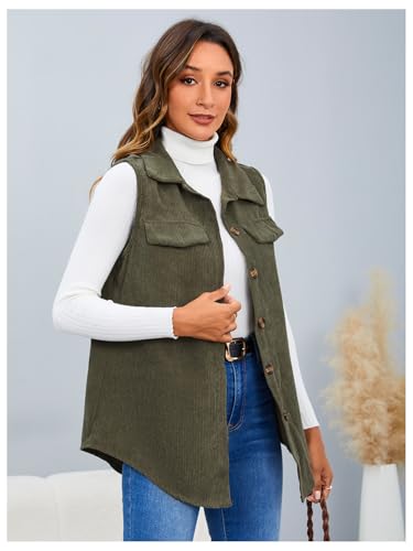 MakeMeChic Women's Ribbed Collared Lightweight Vest Corduroy Button Front Sleeveless Vest Jackets 6