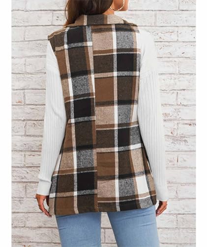 SEMATOMALA Women's Plaid Vest Christmas Cardigan Winter Fall Flannel Vest Sleeveless Blazer Jacket Long Shacket Vest 4