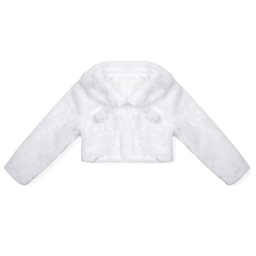 Girl's Faux Fur Long Sleeve Flower Girls Bolero Shrug Cape Jackets Princess Shawl Shrug for Wedding Party 6