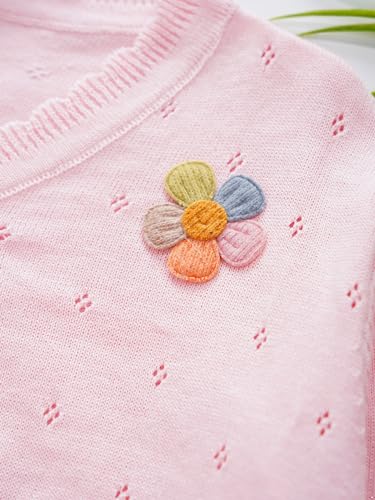 • Girl's long sleeve cardigan with a cute flower on the left chest, one button closure for easy wearing