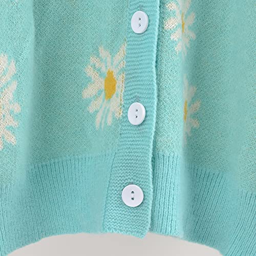 Women Y2K Floral Print Knit Cardigan Sweater Teen Girls Cute Daisy Print Y2K Top Long Sleeve V Neck Vintage Outerwear 6