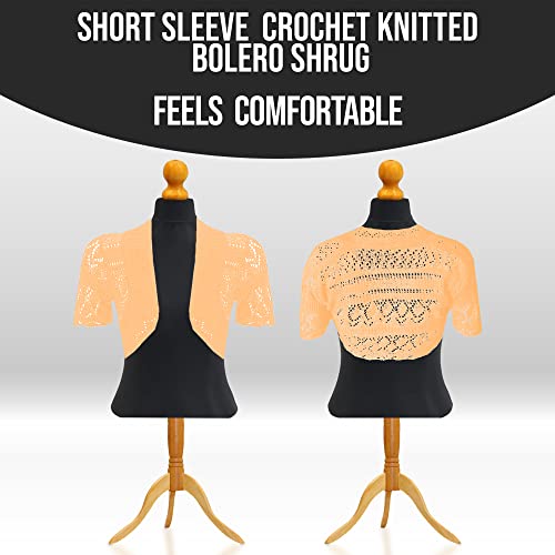 Gal Moda | Little Girl Short Sleeve Cardigan Shrugs in Knitted Pointelle | Cardigan Sweater Elegant Shrugs for Kids Peach 5