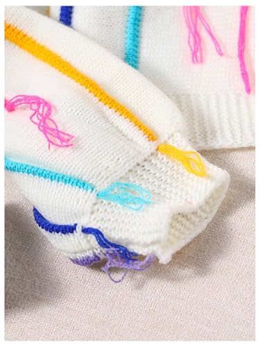 WDIRARA Girl's Rainbow Asymmetrical Tassels Round Neck Long Sleeve Loose Knit Sweater 6