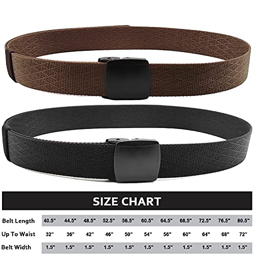 HOT ! 2 Pack Mens Nylon Belt, Lightweight No Metal Belt 28"-64" Waist for Big and Tall Casual Work TSA-friendly Travel