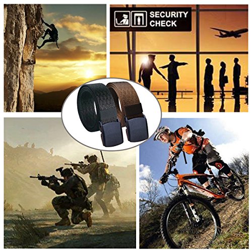 • TSA friendly belt: Military standard no metal BOM plastic buckle belt is lightweight, Nickel Free, Anti allergic,wear-resistant, sturdy and flexible, travel friendly. You can quickly pass a metal detector without take belt off