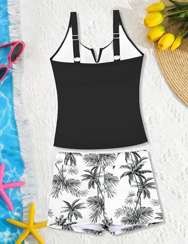 • 🌴【Stylish Design】The girls swimwear is designed with cut-out straps and V-neckline, exuding a sense of style. The modest cut of the tankini offers better coverage for girls. The shorts are printed with delicate tropical floral in bright colors, making your girl look energetic and adorable.