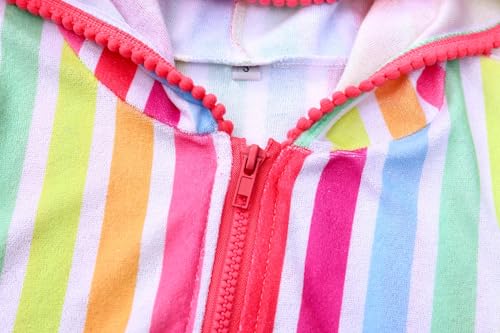 LUCKYGAL Pink Striped Girls Swimsuit Cover Up Kids Swim Coverup Terry Zip-Up Beach Pool Clothes,3t 4t 6