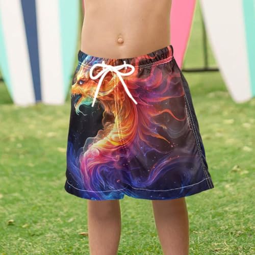 Pigsaly Boys Swim Trunks Fiery Rainbow Dragon Black Galaxy Boys Board Shorts Swimsuit Swimwear Summer Bathing Suit XS 5