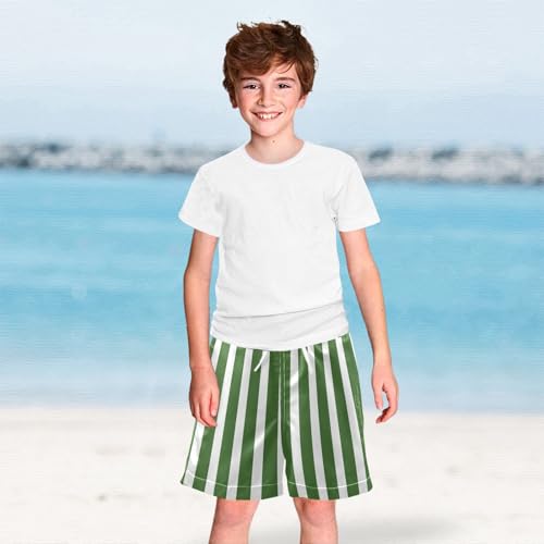 Green with White Stripes Boys Swim Trunks Boys Beach Board Shorts Quick Dry Bathing Suit 5
