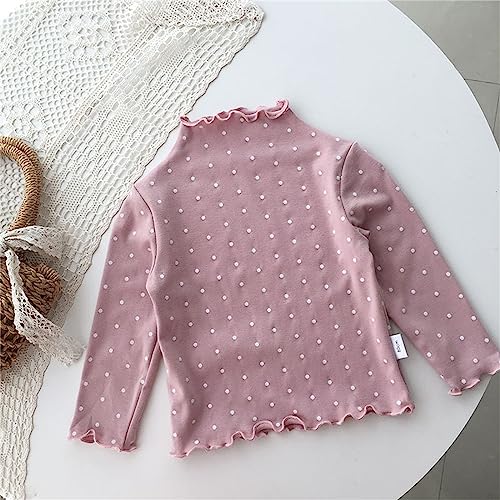 Little Girls Cute Polka Dot Blouse Long Sleeve Wooden Ear Edge Round Neck Shirts for Casual Trendy Birthday Clothes for Kids 4