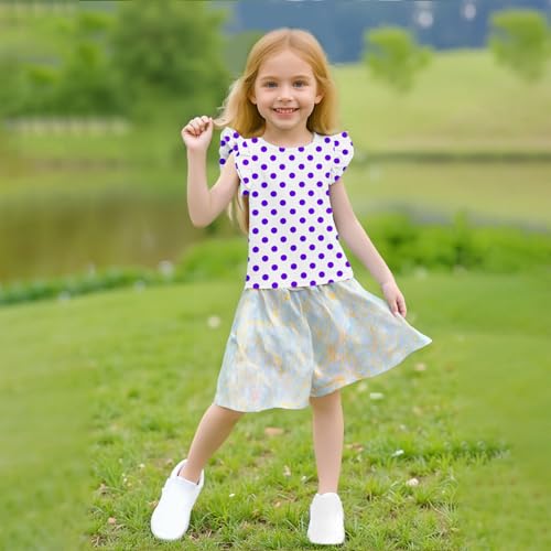Girls Polka Dots Tops for Summer Cute Ruffle Cap Sleeve Round Neck Casual Blouses Cotton Tee Fashion Graphic Tops 2