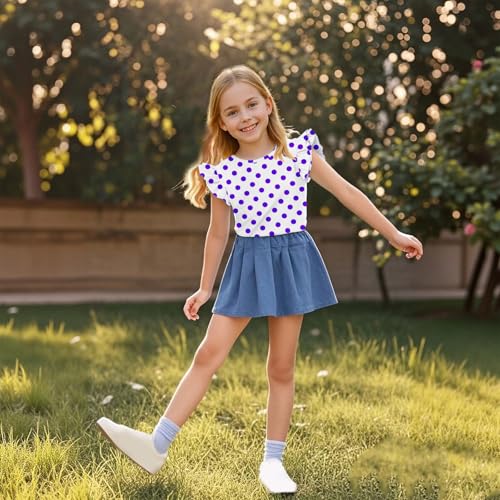 Girls Polka Dots Tops for Summer Cute Ruffle Cap Sleeve Round Neck Casual Blouses Cotton Tee Fashion Graphic Tops 6