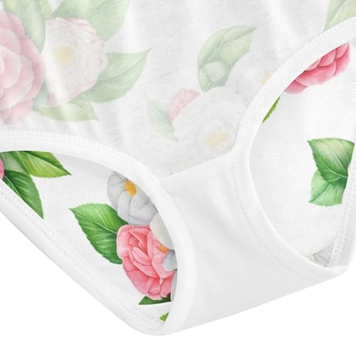 Watercolor Pink White Camellia Flowers Toddler Underwear Custom 2t Cotton Little Girl Panties Print Kids Undies Briefs 4