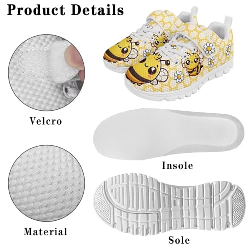 Kids Shoes Little Kid Boys Girls Athletic Running Sports Strap Sneakers for Little Kid/Big Kid Bee Flowers Pattern(White Sole) 4