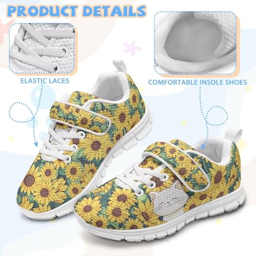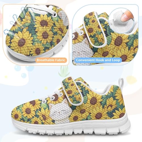 Kids Shoes Running Shoes Girls Boys Primary School Students Sports Shoes Spring and Autumn Casual Shoes Sunflowers Cute White Cat Pattern(White Sole) 1