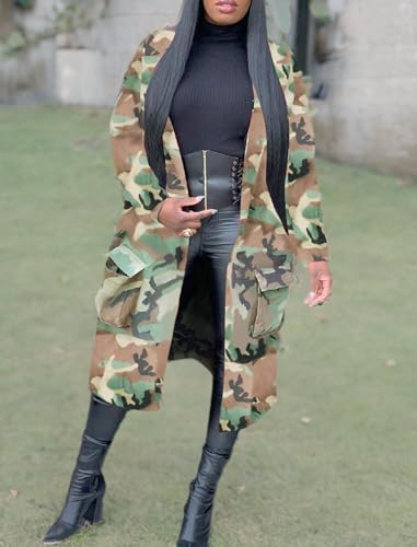 Voghtic Women Casual Camo Jacket Army Military BF Overcoat Long Sleeve Open Front Blazer with Pockets 4