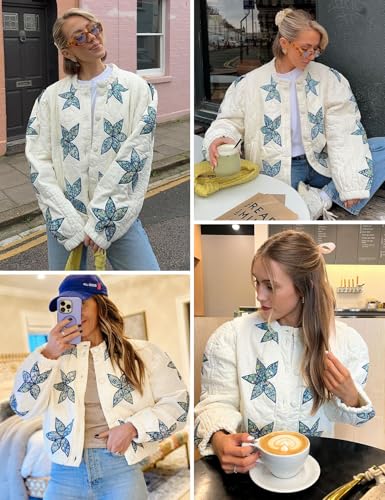HOT ! Wyeysyt Women's Floral Embroidered Cropped Quilted Jacket Lightweight Button Down Bomber Jacket Puffer Coat with Pockets