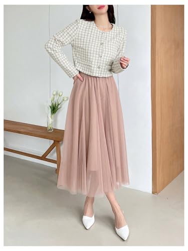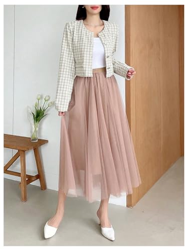 HOT ! OYOANGLE Women's Plaid Button Down Tweed Jackets Long Sleeve Casual Crop Coat Outerwear