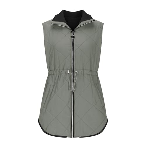 Womens Winter Vests Sleeveless Sherpa Fleece Jacket Zip Up Stand Collar Warm Drawstring Waist Coat with Pockets 5