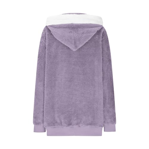 Womens Fleece Jacket Winter Warm Oversized Shaggy Sherpa Coats Plus Size Long Sleeve Zip Up Soft Hooded Outerwear 7