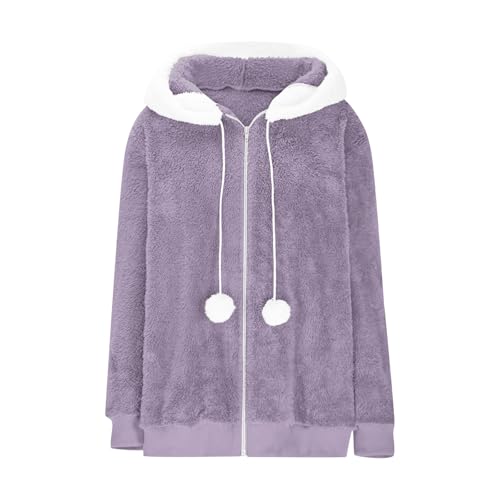 HOT ! Womens Fleece Jacket Winter Warm Oversized Shaggy Sherpa Coats Plus Size Long Sleeve Zip Up Soft Hooded Outerwear