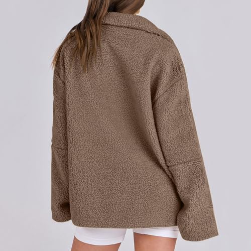 Womens Fuzzy Sherpa Fleece Jacket Oversized Zip Up Winter Coats Warm Stand Collar Outerwear Casual Coat with Pockets 4