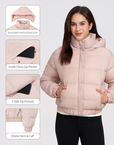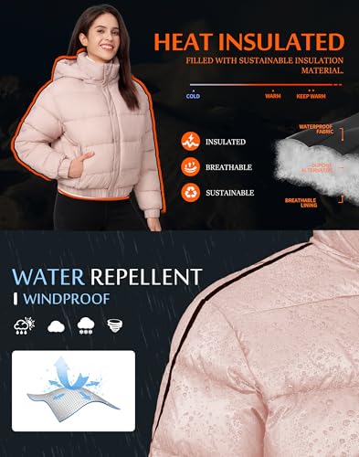 • CROPPED PUFFER: This cropped womens puffer coat offers unbeatable comfort and warmth, making it ideal for all your winter adventures. Layer it over a sweater or fleece for extra coziness during the colder months. The cropped length pairs effortlessly with your favorite high-waisted jeans or leggings