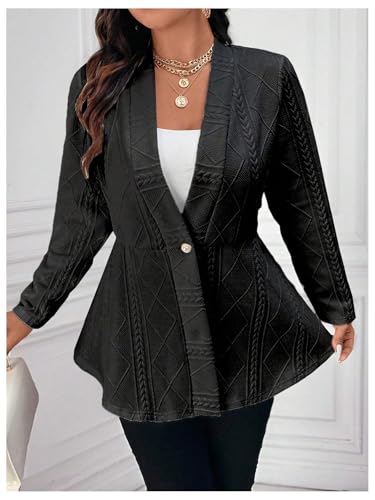 • Feature: Plus Size, Button Front, Ruffle Hem, Slim Fit, Textured, Blazer for Women