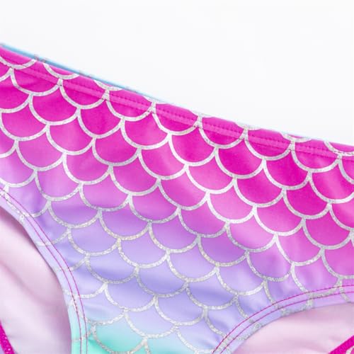 • Stylish Design: The adjustable bikini top is adorned with a ruffled hemline, and an elasticized triangle bottom with mermaid scales for a perfect fit between the top and bottom.The bikini two piece set is ideal presents for your girls.