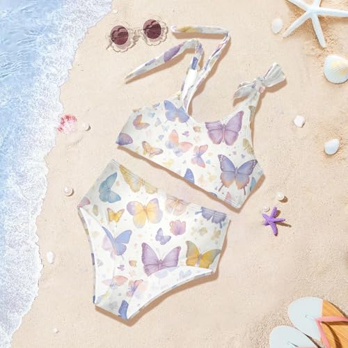 Colorful Butterfly Girls' 2 Piece Kids Bikini Set Quick-Dry Swimsuit Swimming Suits Cute Shoulder Strap 4
