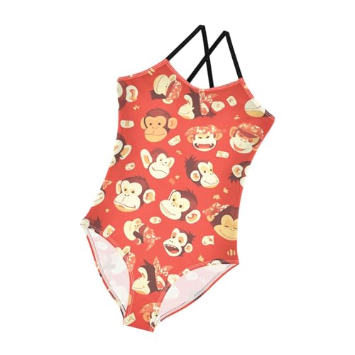 KLL Monkey Red Girls 1-Piece Bathing Suit Summer Swimming Suits with Adjustable Straps Quick Dry 6