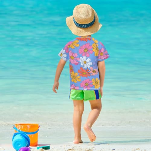 ALAZA Kids Rash Guard Girls Toddler Swim Shirts Short Sleeve Cosmos Flower UPF 50+ 3T 1