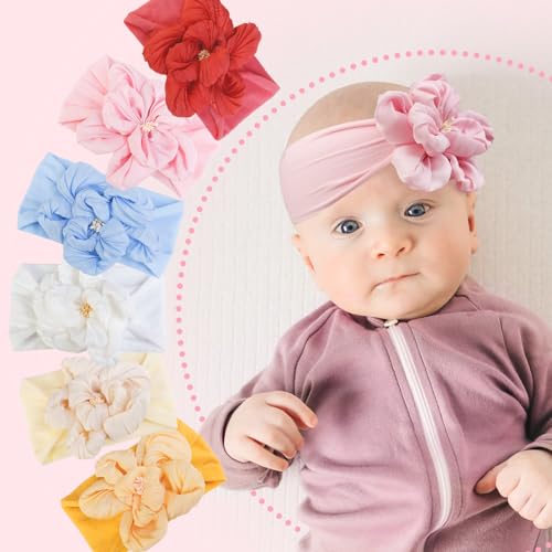 • SOFT HEADBANDS FOR BABY GIRLS -Made from nylon, comfortable and soft, stretchy headband with big flower bows.They will stay on your princess's head for a long time, no mark left