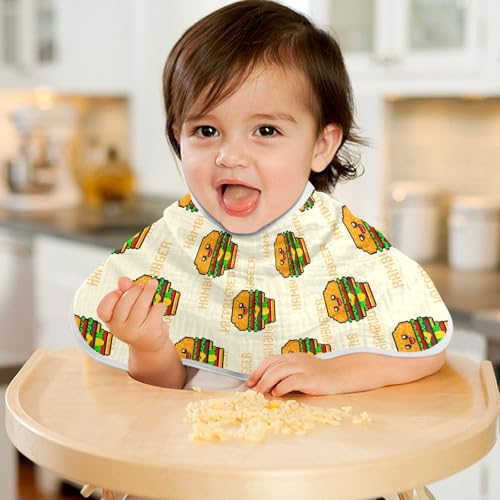 HOT ! Pixel Burger Pattern Muslin Burp Cloths for Baby 4-Layer Absorbent Cotton Large 22" x 11" Soft Spit Up Rags for Newborns Boys Girls, 2 Pack